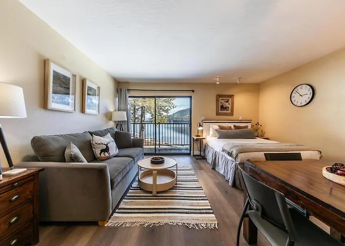 Charming Deluxe Studio w/Lake View #246 at Donner Lake Village villa beschikt over een kitchenette waar gasten een koelkast, een oven en keukengerei kunnen vinden. Amerikaanse gerechten worden geserveerd bij The Pub at Donner Lake, dat op net om de hoek bij deze woning ligt. De dichtstbijzijnde luchthaven is Reno / Tahoe, op 75 km afstand.